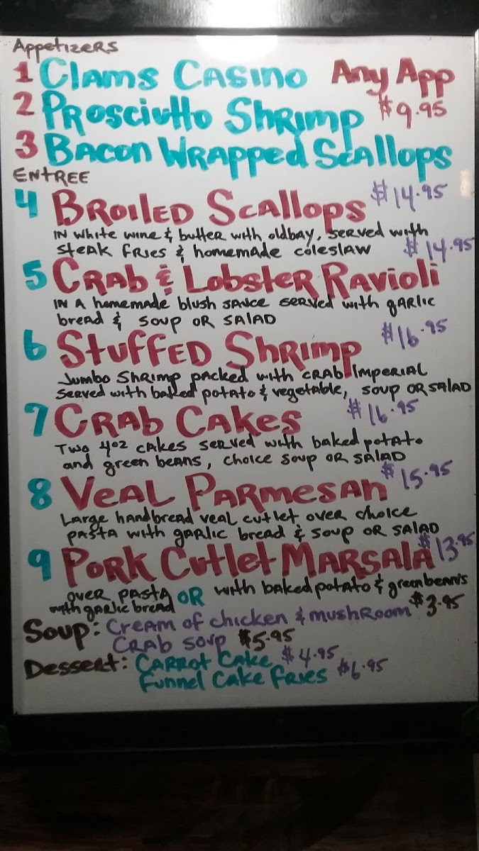 Guests can expect a selection of well-loved pub staples like juicy burgers and cheesesteaks alongside more substantial options such as prime rib and filet mignon. Lighter bites like crab balls and broiled scallops add variety, while sides such as homemade coleslaw and steak fries round out the experience. The drink menu complements the food with a range of comforting and classic choices, including carefully crafted Bloody Marys and martinis, fitting for unwinding and socializing.